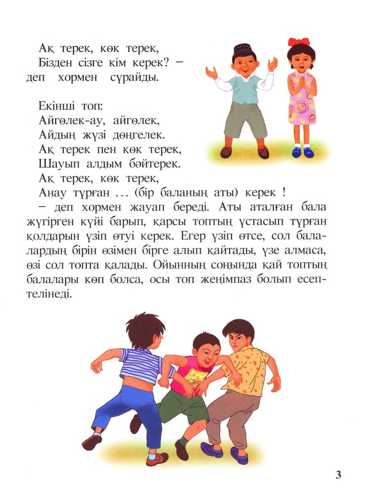 Балалар ойындарыВ данный момент этот товар отсутствует в продаже. Возможно, у нас найдется аналогичный или похожий товар здесь. Серия: Сен білесің бе? Ортаға екі бала шығындар. Бір-бірлеріне арқаларыңды тіреп түрып қолдарыңды шынтақтастырыңдар. Жүргізішінің белгісінен кейін жерден қайсысың бұрын екіншіңді көтеріп алсаңдар, ұтқан болып есептелесіндер. |