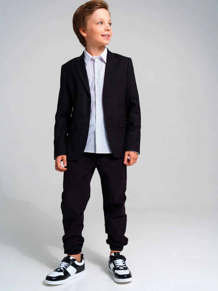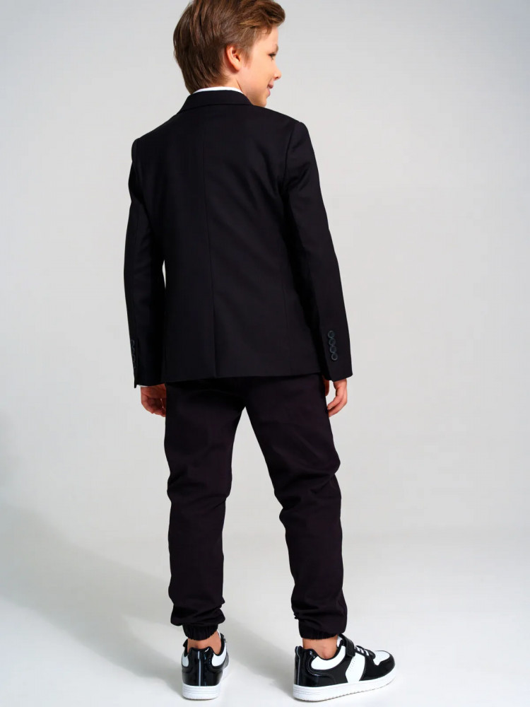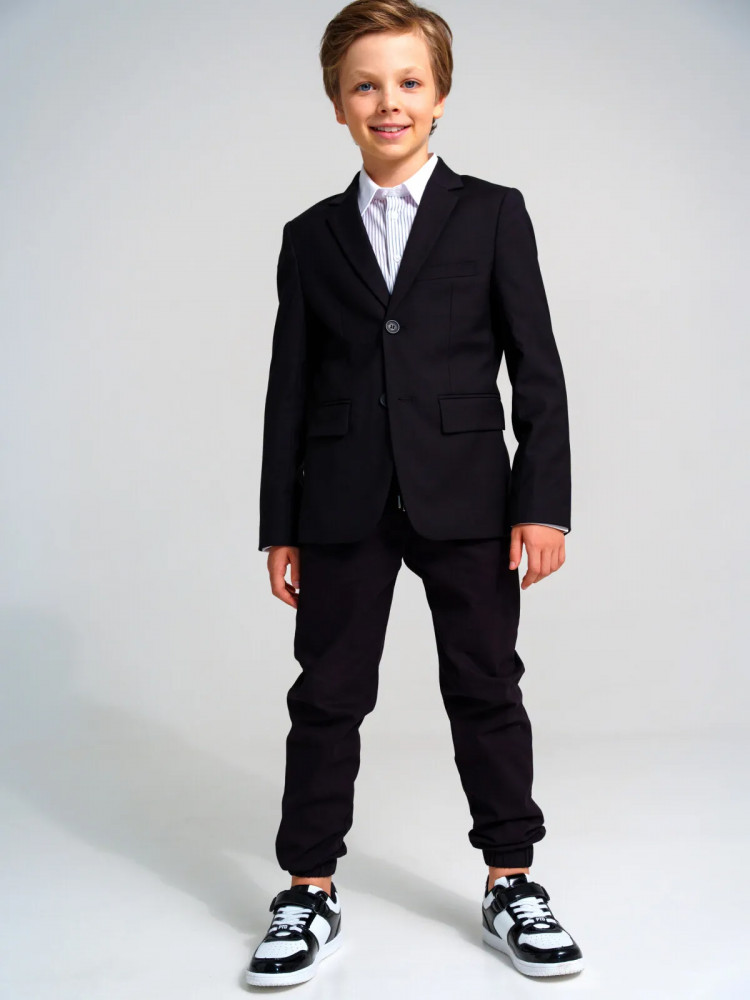 Школьный черный классический костюм — это главный деловой атрибут любого школьника. Классический костюм для мальчика подростка отлично подойдет в школу на каждый день и для торжественных мероприятий. Именно таким и должен быть современный костюм для школы — элегантный, качественный, красивый и практичный. Сложный состав ткани позволяет носить пиджак продолжительное время в течение дня, ощущая уют и комфорт. Пиджак на подкладке. Школьные прямые брюки на резинке с дополнительной утяжкой шнурком обеспечивают комфортную посадку по фигуре. Удобные карманы в боковых швах.