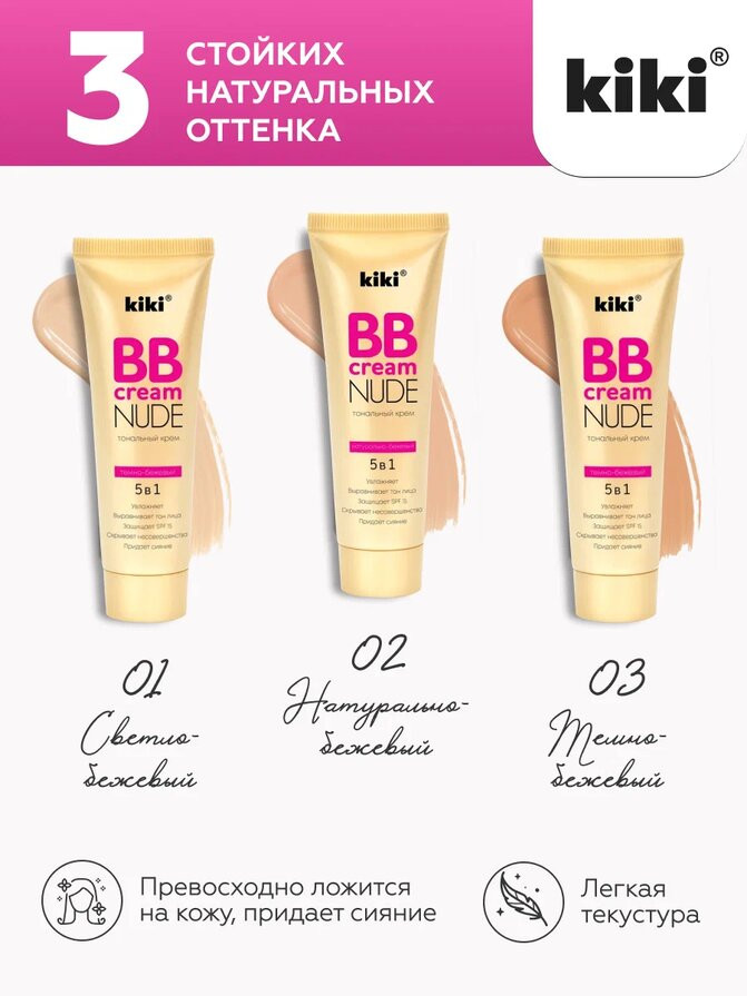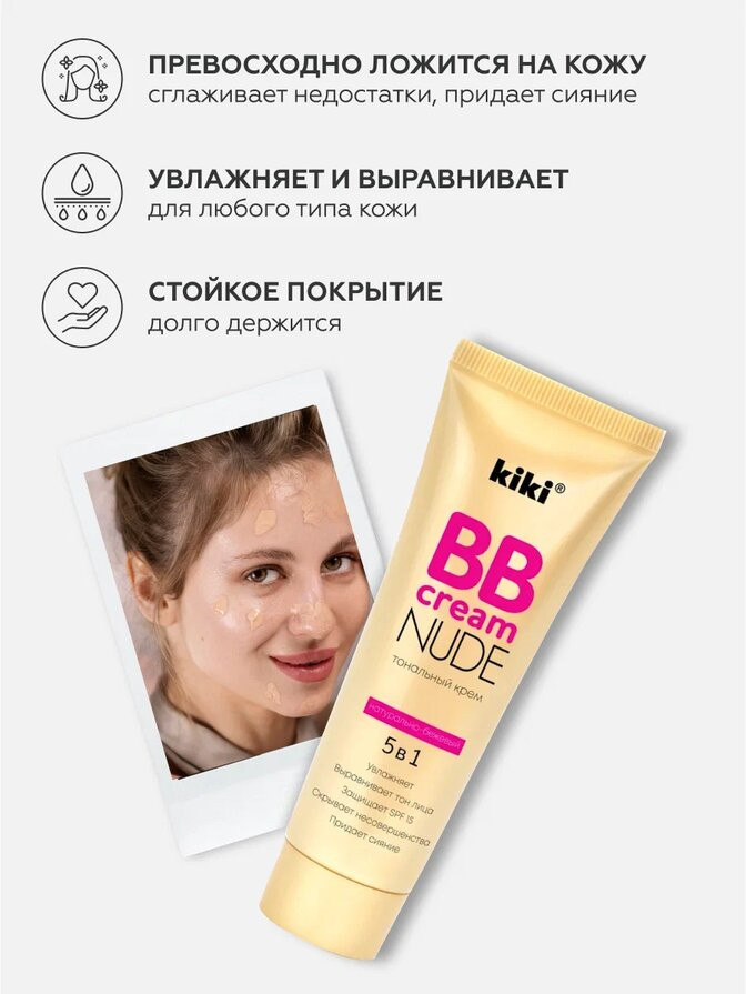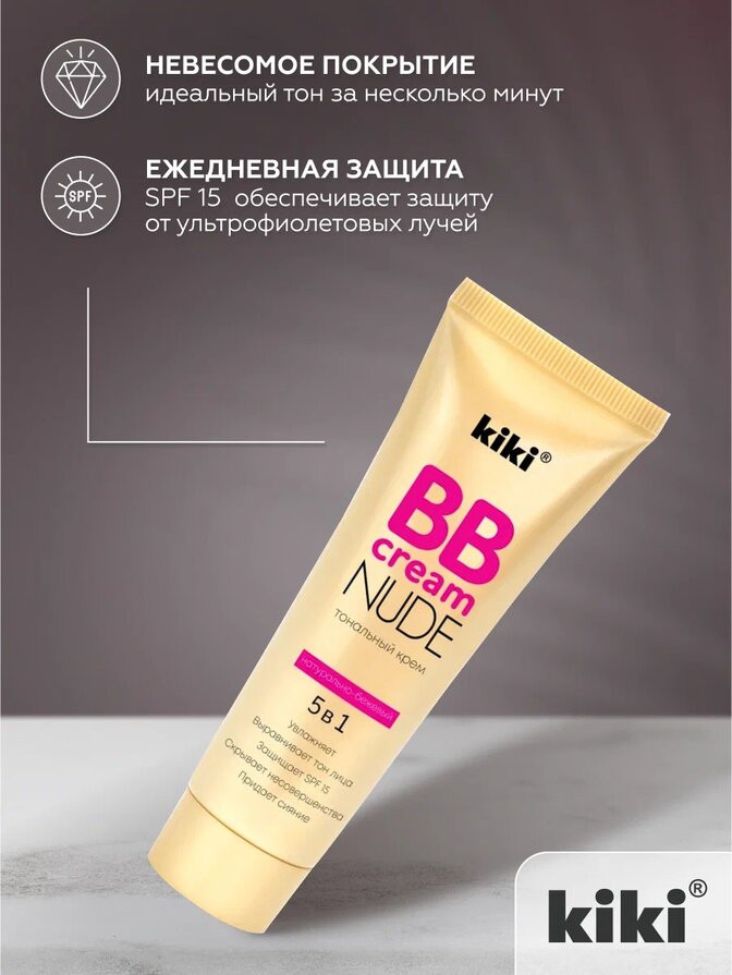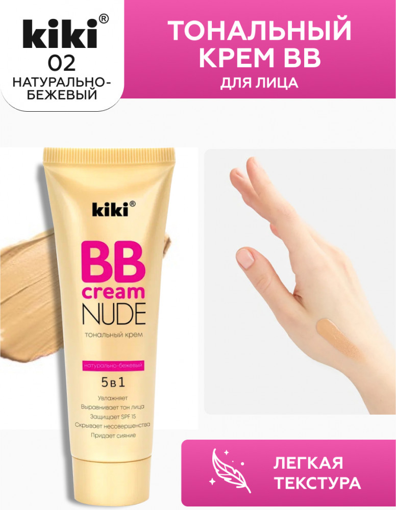 Kiki Тональный крем для лица «BB Cream Nude 5в1» SPF 15, оттенок 02 Натурально-бежевый