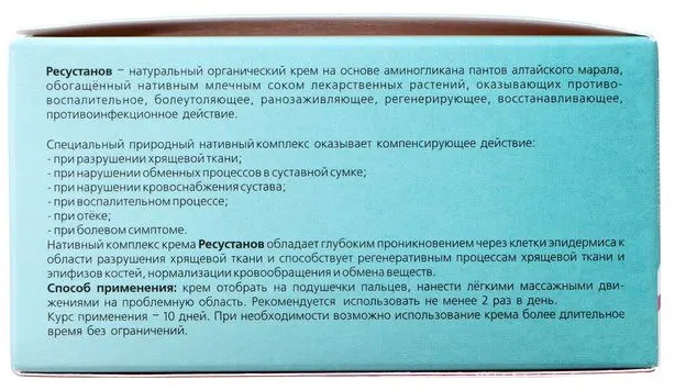 Vitamuno Крем для тела "Ресустанов" для суставовВ данный момент этот товар отсутствует в продаже. Возможно, у нас найдется аналогичный или похожий товар здесь. Натуральный крем Ресуставов рекомендован: при болях в суставах при ревматических болях при артритах при артрозе при нарушении функций опорно-двигательного аппарата при растяжении при ушибах при травмах при болях в мышцах, ночных спазмах при воспалительных процессах слизистых сумок суставов при невритах при нарушении кровообращения, нарушении подвижности конечностей, онемении пальцев при остеохондрозе позвоночника при сильных болях в области спины и крестца при шейном остеохондрозе при переломах костей при рубцах и операционных швах при спондилите при подагре при флебите и тромбофлебите поверхностных вен. |