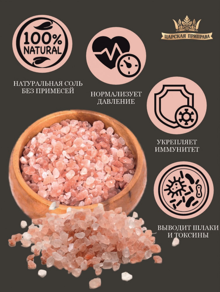 Царская приправа Гималайская сольВ данный момент этот товар отсутствует в продаже. Возможно, у нас найдется аналогичный или похожий товар здесь. Гималайская соль крупного помола розового цвета — это натуральный минеральный продукт, который получает свой характерный розовый оттенок благодаря наличию минералов, таких как железо, кальций и калий. Эта соль часто используется в кулинарии для посолки мяса, рыбы и морепродуктов перед жаркой или запеканием, чтобы придать им насыщенный вкус и сочность. Можно добавить в супы, соусы и маринады, тесто для хлеба, печенья и пирогов, а также использовать в качестве декоративного элемента для подачи на стол. |