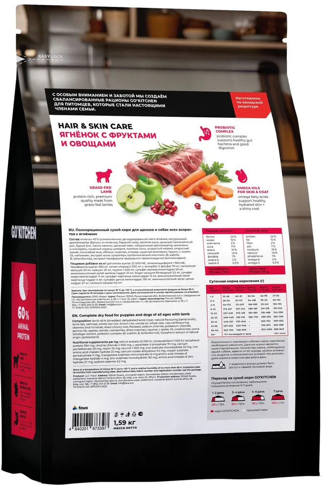 Go'kitchen Корм для щенков и собак с ягненком, фруктами и овощами