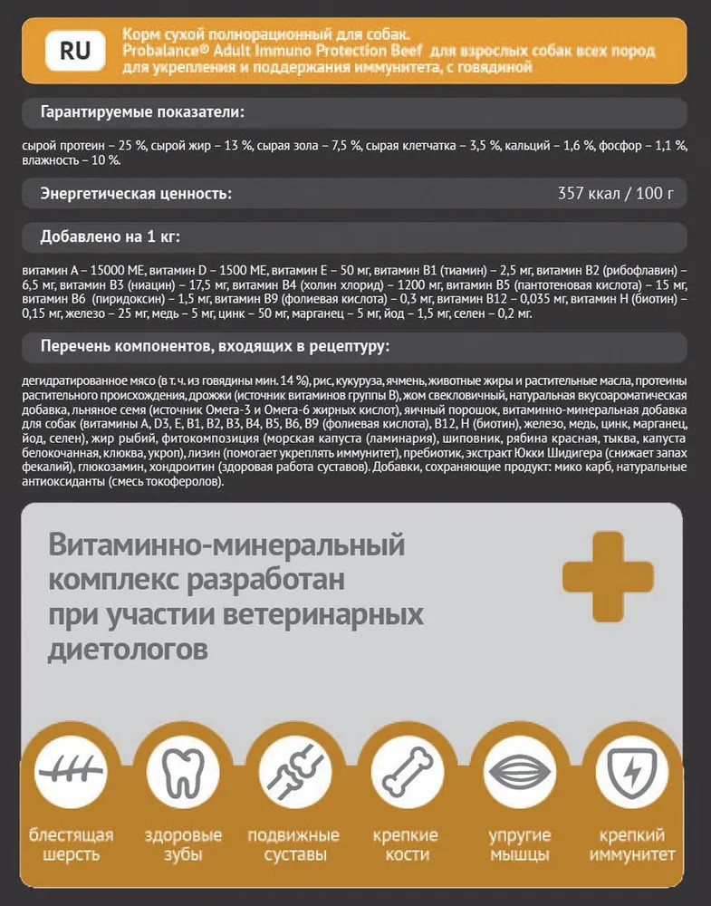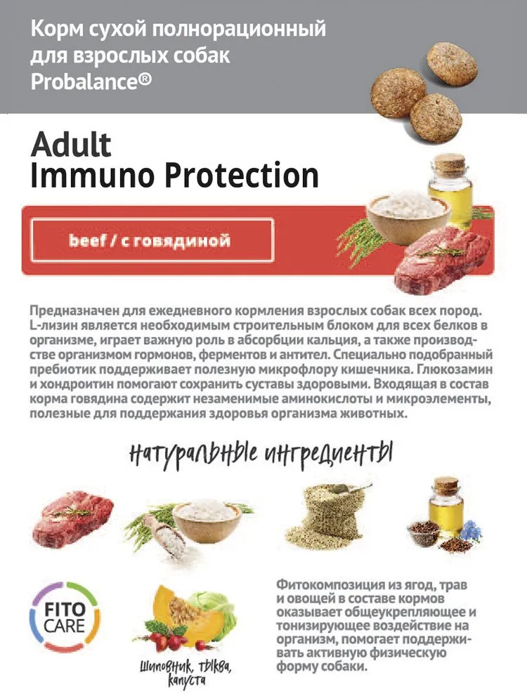 Probalance Корм для собак с говядиной «Защита иммунитета»