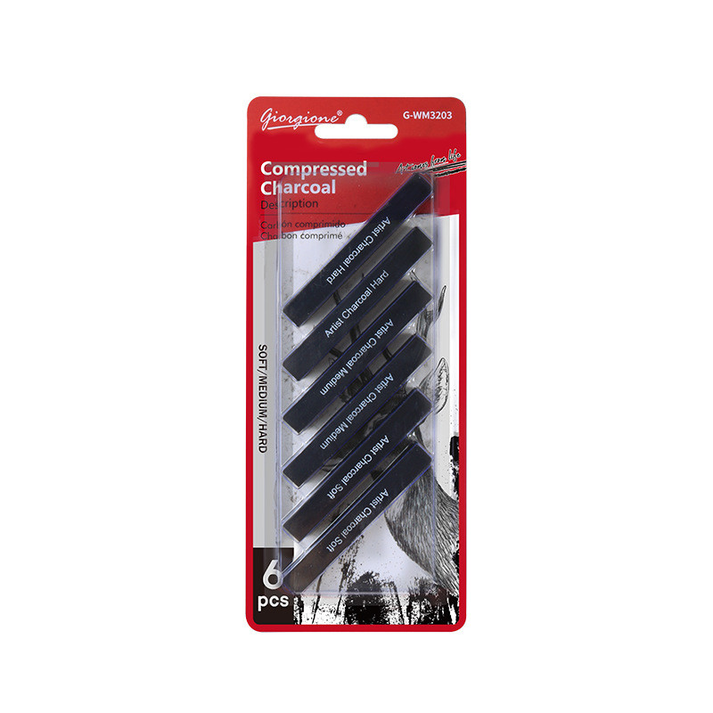В данный момент этот товар отсутствует в продаже. Возможно, у нас найдется аналогичный или похожий товар здесь. Рисование углем — это уникальный вид художественного творчества, который позволяет создавать глубокие и выразительные изображения с насыщенными черными оттенками и мягкими градиентами. Представляем вашему вниманию набор прессованного угля для рисования Giorgione, состоящий из 6 высококачественных палочек.