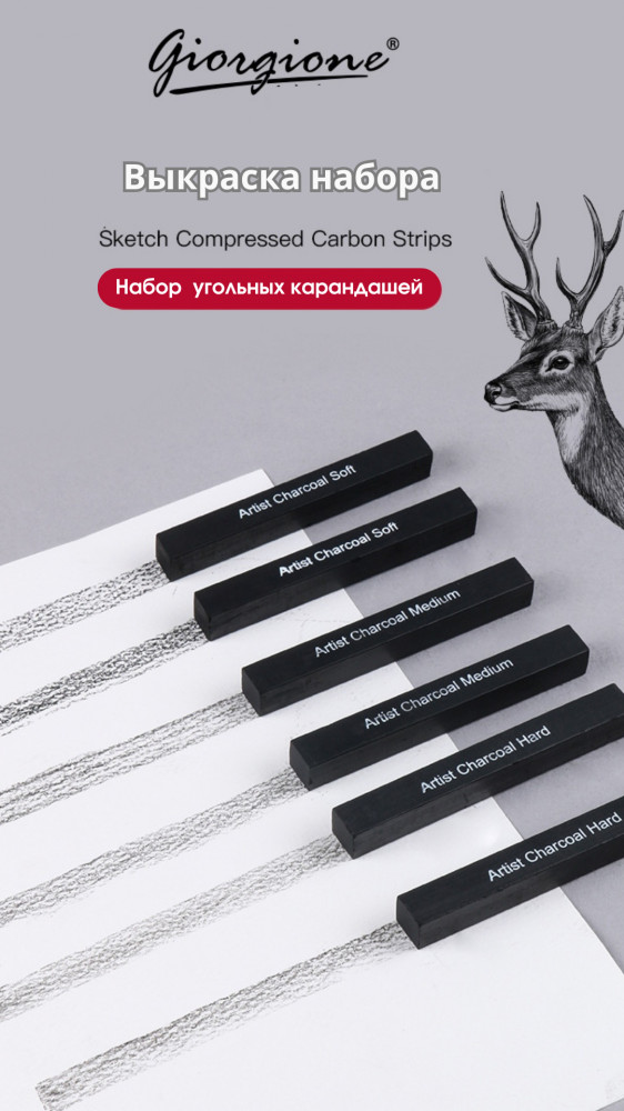 • универсальность: набор включает 6 палочек угля, что позволяет художнику экспериментировать с различными техниками и стилями рисования.Подходит как для начинающих, так и для профессиональных художников, желающих добавить глубину и выразительность своим работам;