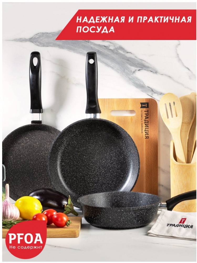 Сковородка нравится, моется легко, сама не тяжелая, гладкая. 24 см хороший объем на троих