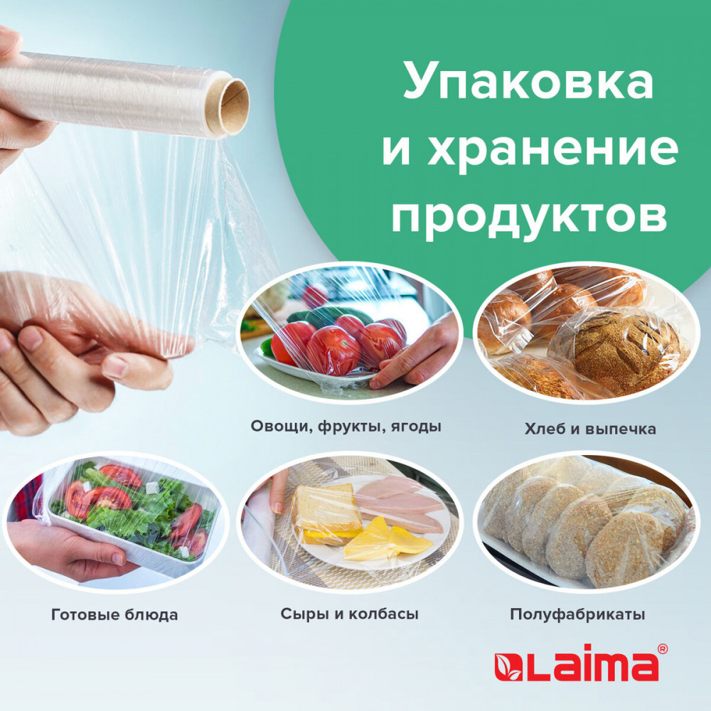 💳 Оплатить за товар можно при получении 🇰🇿 Есть бесплатная доставка по Казахстану 🎁 Копите бонусы с каждой покупки Пищевая пленка LAIMA предназначена для временной упаковки продуктов питания. Пленка не пропускает запахов и предохраняет продукты от высыхания. |