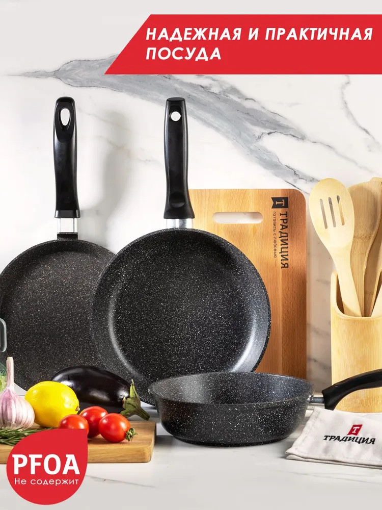 Сковородка нравится, моется легко, сама не тяжелая, гладкая. 24 см хороший объем на троих
