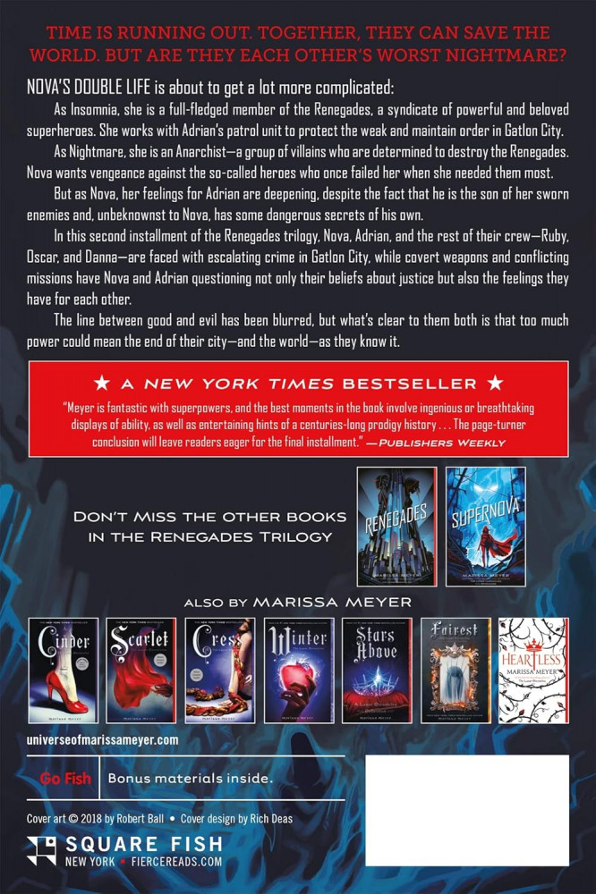 ArchenemiesВ данный момент этот товар отсутствует в продаже. Возможно, у нас найдется аналогичный или похожий товар здесь. Nova’s double life is about to get a lot more complicated: As Insomnia, she is a full-fledged member of the Renegades, a syndicate of powerful and beloved superheroes. She works with Adrian’s patrol unit to protect the weak and maintain order in Gatlon City. As Nightmare, she is an Anarchist — a group of of villains who are determined to destroy the Renegades. Nova wants vengeance against the so-called heroes who once failed her when she needed them most. But as Nova, her feelings for Adrian are deepening, despite the fact that he is the son of her sworn enemies and, unbeknownst to Nova, he has some dangerous secrets of his own. In this second installment of the Renegades trilogy, Nova, Adrian, and the rest of their crew — Ruby, Oscar, and Danna — are faced with escalating crime in Gatlon City, while covert weapons and conflicting missions have Nova and Adrian questioning not only their beliefs about justice, but also the feelings they have for each other. The line between good and evil has been blurred, but what’s clear to them both is that too much power could mean the end of their city — and the world — as they know it. |