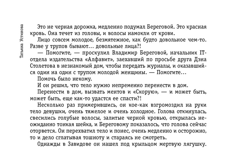 А Маня Поливанова совершенно не выносит вранья и человеческих мучений. И если уж Алекс почему-то решил «освободиться» — пожалуйста! Ей нужно спасать Владимира Берегового — главу IT-отдела издательства «Алфавит» — который попадает в почти мистическую историю с исчезнувшим трупом. Труп испаряется из дома телезвезды Сергея Балашова, а оказывается уже в багажнике машины Берегового. Только это труп другого человека. Да и тот злосчастный дом, как выяснилось вовсе не Балашова…