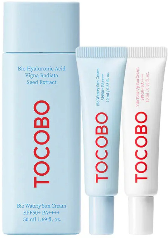 Bio Watery Sun Cream: Water, Dibutyl Adipate, Propanediol, Ethylhexyl Triazone, Terephthalylidene Dicamphor Sulfonic Acid, Polyglyceryl-3 Distearate, Niacinamide, Tromethamine, Cetearyl Alcohol, 12-Hexanediol, Diethylamino Hydroxybenzoyl Hexyl Benzoate, Pentylene Glycol, Polysilicone-15, Vigna Radiata Seed Extract, Gossypium Herbaceum Extract, Sophora Flavescens Root Extract, Rheum Palmatum Root/ Stalk Extract, Scutellaria Baicalensis Root Extract, Phellodendron Amurense Bark Extract, Oenothera Biennis Flower Extract, Ulmus Davidiana Root Extract, Pinus Palustris Leaf Extract, Pueraria Lobata Root Extract, Sodium Hyaluronate, Gossypium Herbaceum Seed Oil, Polymethyl- silsesquioxane, Sodium Polyacryloyl- dimethyl Taurate, Glyceryl Stearate, Bis- Ethylhexyloxyphenol Methoxyphenyl Triazine, Potassium Cetyl Phosphate, Glycerin, Glyceryl Stearate Citrate, Inulin Lauryl Carbamate, Ammonium AcryloyIdimethyltaurate/Vp Copolymer, Ethylhexylglycerin, Adenosine, Butylene Glycol Tocopherol, Fragrance.