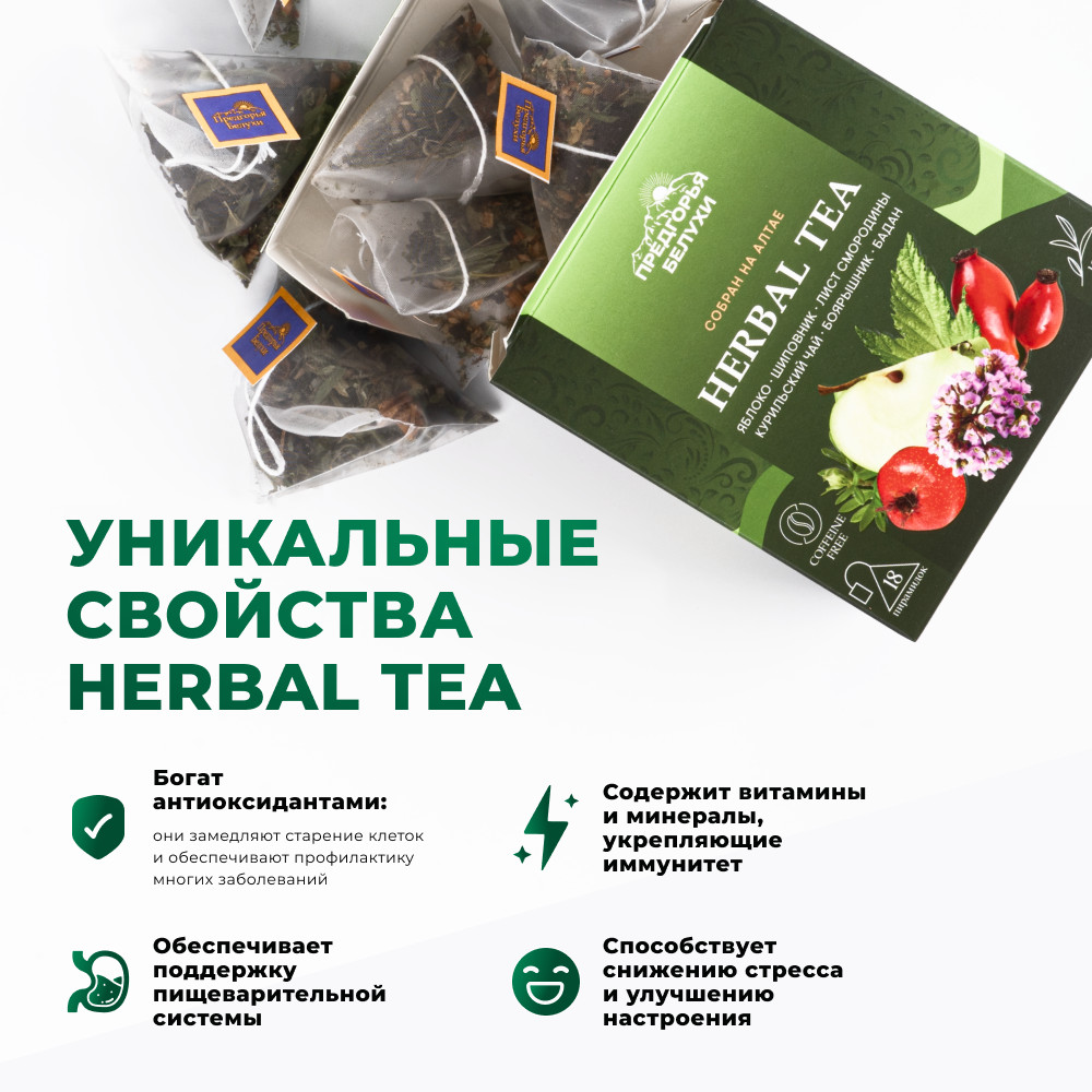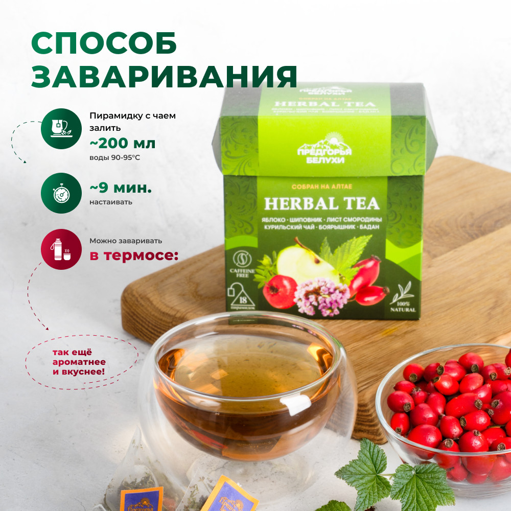 Предгорья Белухи Травяной чай в пакетиках с яблоком, шиповником, баданом, листом смородины, курильским чаем, боярышником