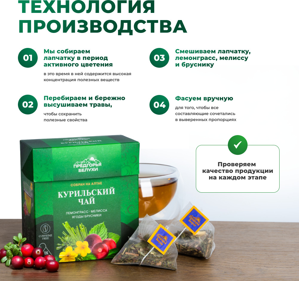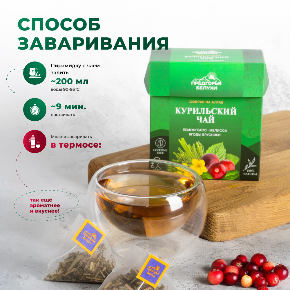 Предгорья Белухи Травяной чай в пакетиках с лемонграссом, мелиссой, брусникой
