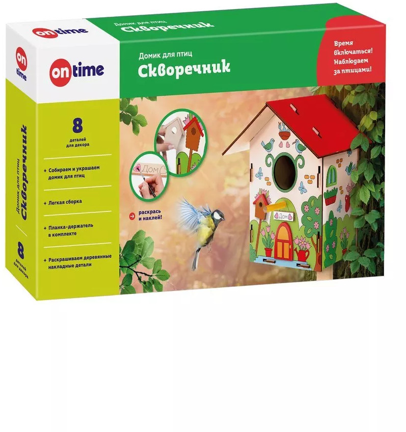 On Time Скворечник «Домик для птиц»В данный момент этот товар отсутствует в продаже. Возможно, у нас найдется аналогичный или похожий товар здесь. Набор для сборки скворечника «Домик для птиц» поможет разбудить у ребенка интерес к живой природе! Собрать этот скворечник не составит особого труда – для этого в комплекте есть все самое необходимое, а еще дополнительные детали, которые можно раскрасить и наклеить на указанные пунктиром места. Готовый скворечник можно закрепить возле дома или на садовом участке, где ребенок сможет наблюдать за жизнью пернатых друзей. |