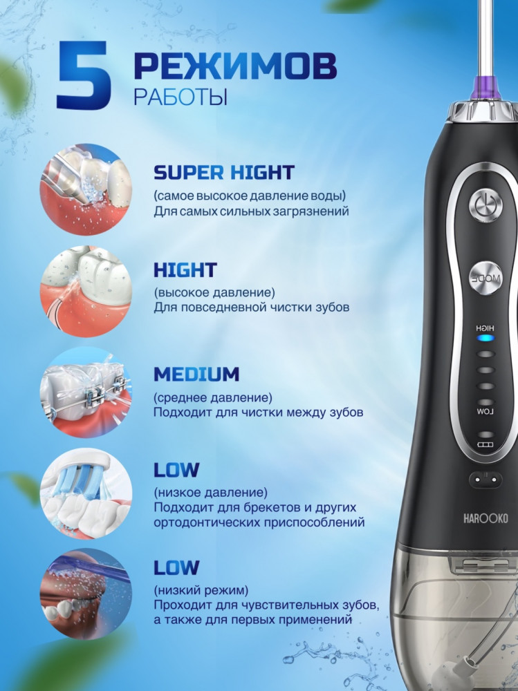 Несколько режимов, насадки - всё, чтобы использование было удобным!