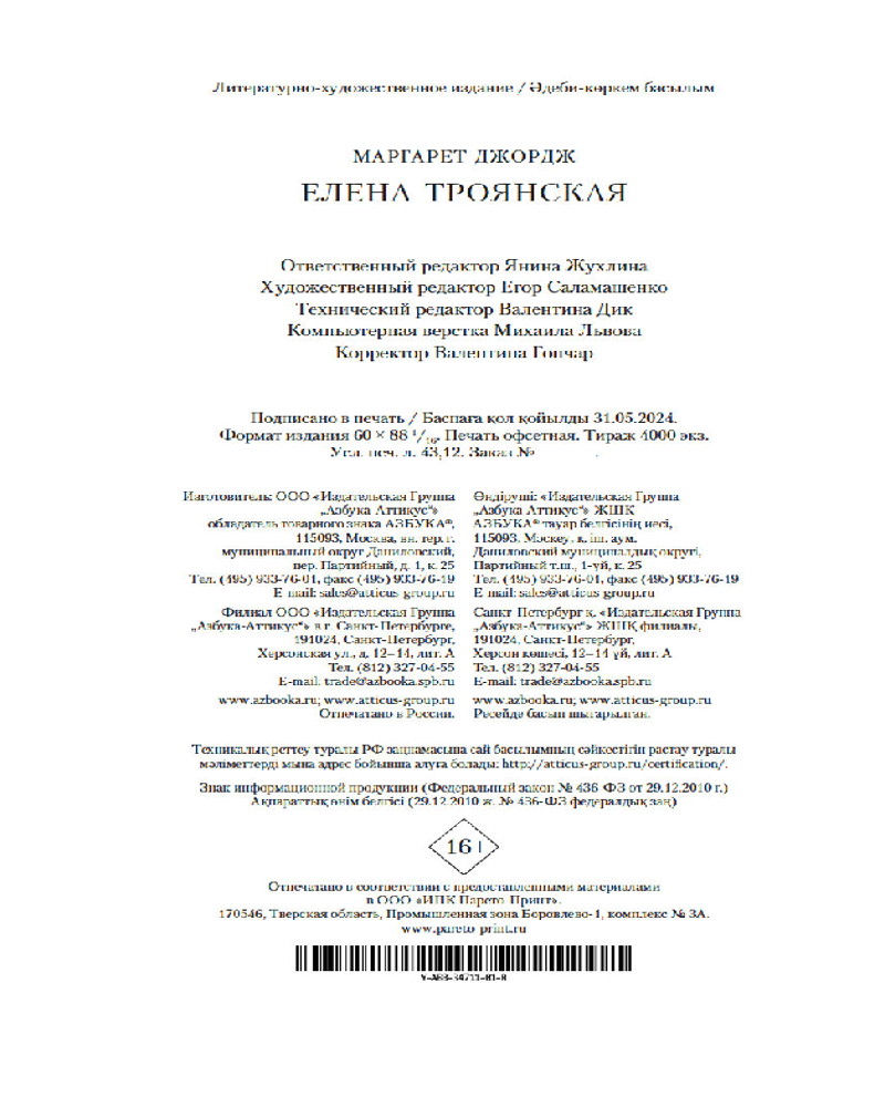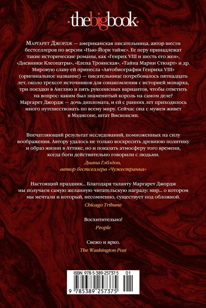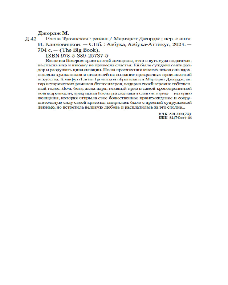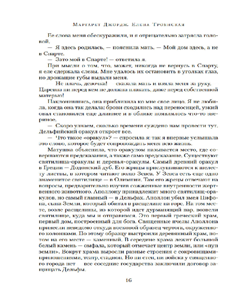 Елена ТроянскаяВ данный момент этот товар отсутствует в продаже. Возможно, у нас найдется аналогичный или похожий товар здесь. Серия: The Big Book Воспетая Гомером красота этой женщины, «что в путь суда подвигла», не спасла мир и никому не принесла счастья. Ей было суждено сеять раздор и разрушать цивилизации. Но на протяжении многих веков она вдохновляла художников и писателей на создание прекрасных произведений искусства. К мифу о Елене Троянской обратилась и Маргарет Джордж, автор исторических романов-бестселлеров, подарив своей героине собственный голос. Дочь бога, жена царя, главный приз в самой кровопролитной войне древности, прекрасная Елена рассказывает свою историю — историю женщины, которая открыла свое божественное происхождение и сокрушительную силу своей красоты, смирилась было с пресной супружеской жизнью, но встретила великую любовь и расплатилась за это сполна… |