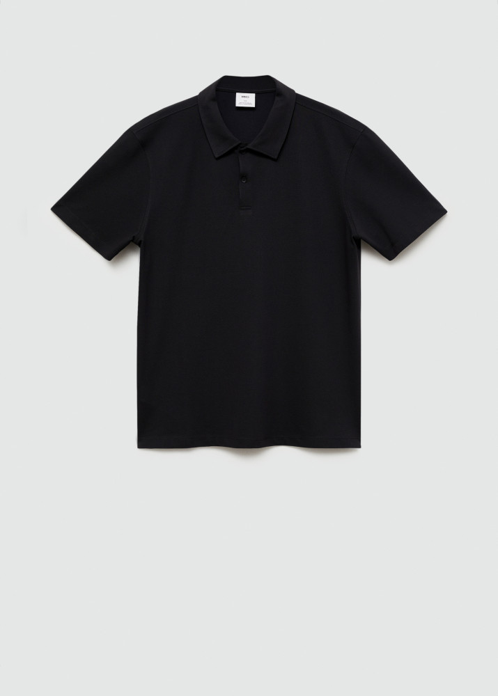 Slim fit. Пике из хлопка. Воротник-поло. Застежка на пуговицы. Короткие рукава. Прямой низ.