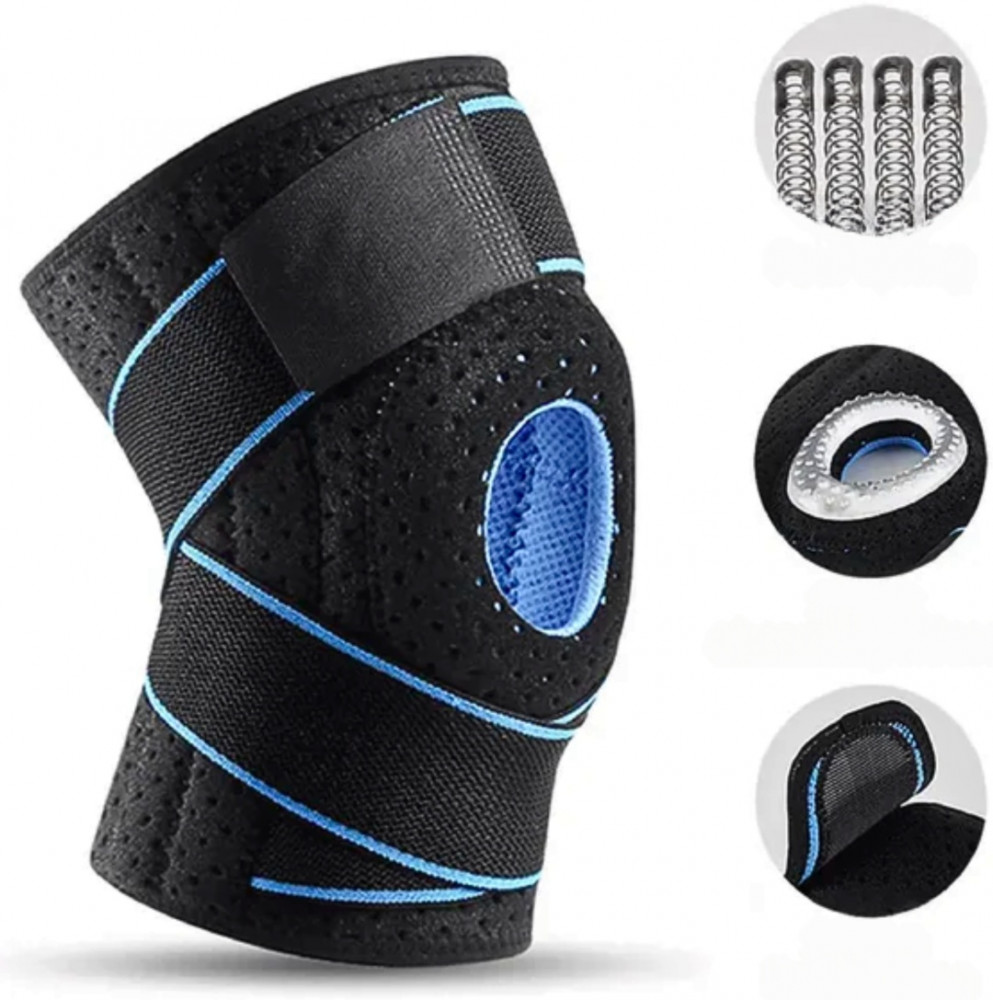 Наколенник легко надевается и снимается, благодаря разъемной конструкции с тремя застежками-липучками. Подходит для ежедневного ношения как мужчинам, так и женщинам. Ребра жесткости бандажа — 4. Размер бандажа универсален.