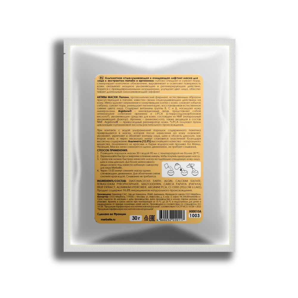 Mebelux Маска-лифтинг для лица альгинатная отшелушивающая и очищающая с экстрактом папайи и аргинином