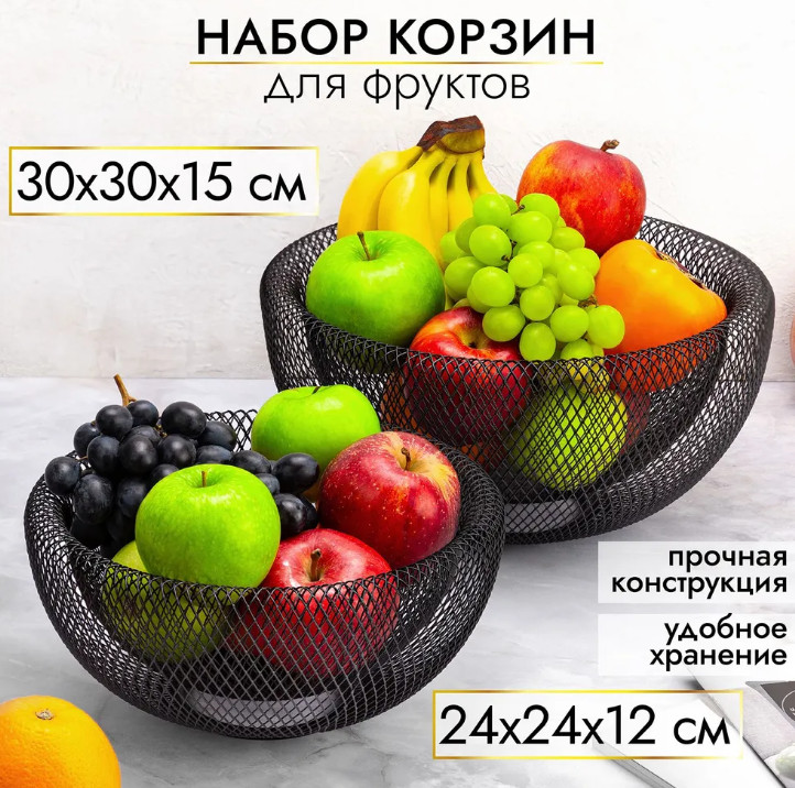 El Casa Набор корзин для фруктовВ данный момент этот товар отсутствует в продаже. Возможно, у нас найдется аналогичный или похожий товар здесь. Комплект выполнен из прочного металла и обладает оригинальным геометрическим дизайном. Каждая фруктовая ваза представляет собой изящную чашу в виде металлической сетки. Фруктовница эстетично впишется в самые разные стили интерьера: лофт, сканди, минимализм. Металлическое блюдо — это универсальное решение для интерьера вашего дома или офиса. Можно разместить в вазе фрукты на кухне, а также украсить корзинкой гостиную или приёмную. Удобный кухонный аксессуар для сервировки овощей и фруктов поможет организовать порядок на вашей кухне. Сервировочная фруктовая подставка не только дополнит декор праздничного стола, но и подойдет для пикника. Такая стильная посуда порадует ваших гостей и сделает застолье еще приятнее! Набор не подходит для ПММ (посудомоечной машины). Круглая настольная корзина для фруктов станет отличным подарком для женщин на любой праздник. Подарите её маме, бабушке, сестре — такой вещи будет рада каждая хозяйка. Набор сетчатых корзин для фруктов станет настоящим украшением вашей кухни или приятным подарком для родных и близких! |