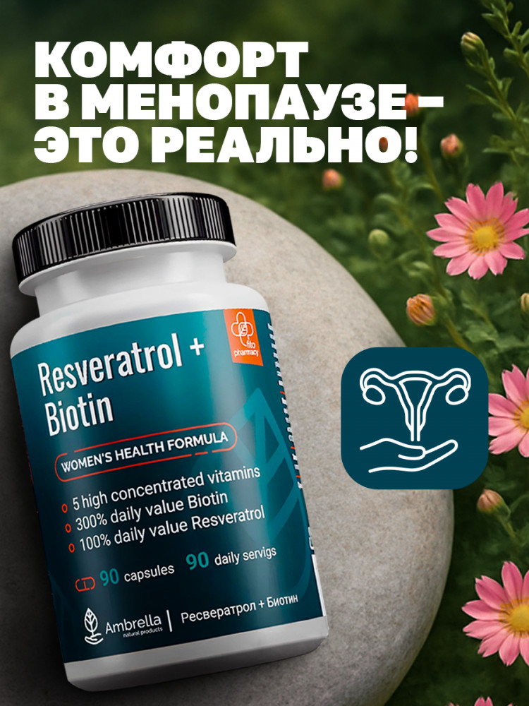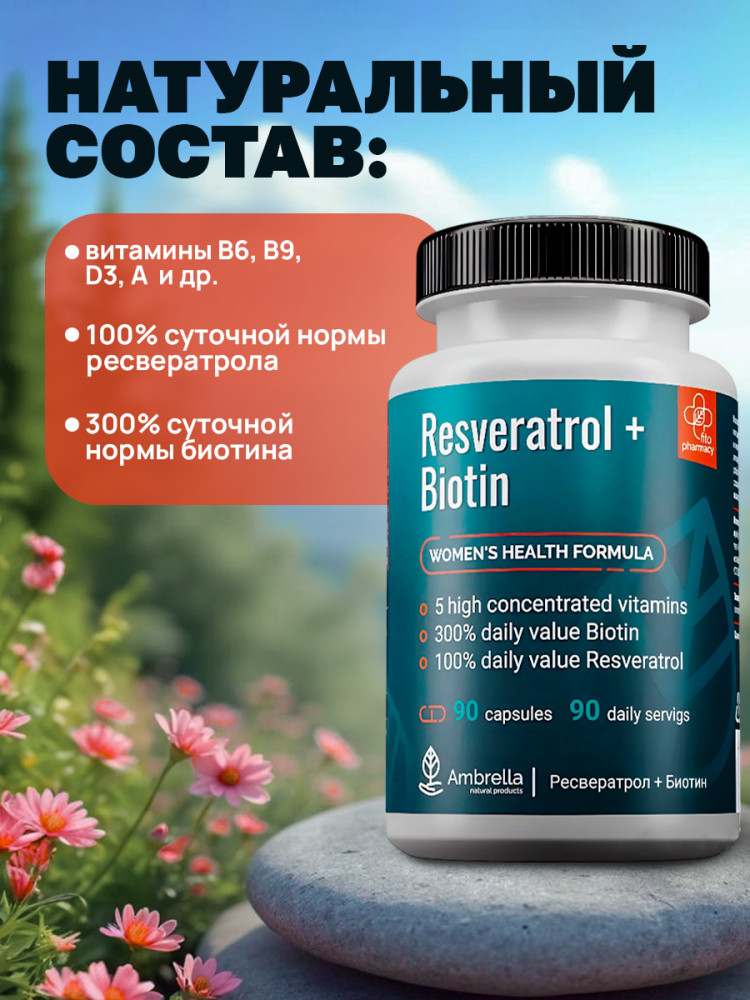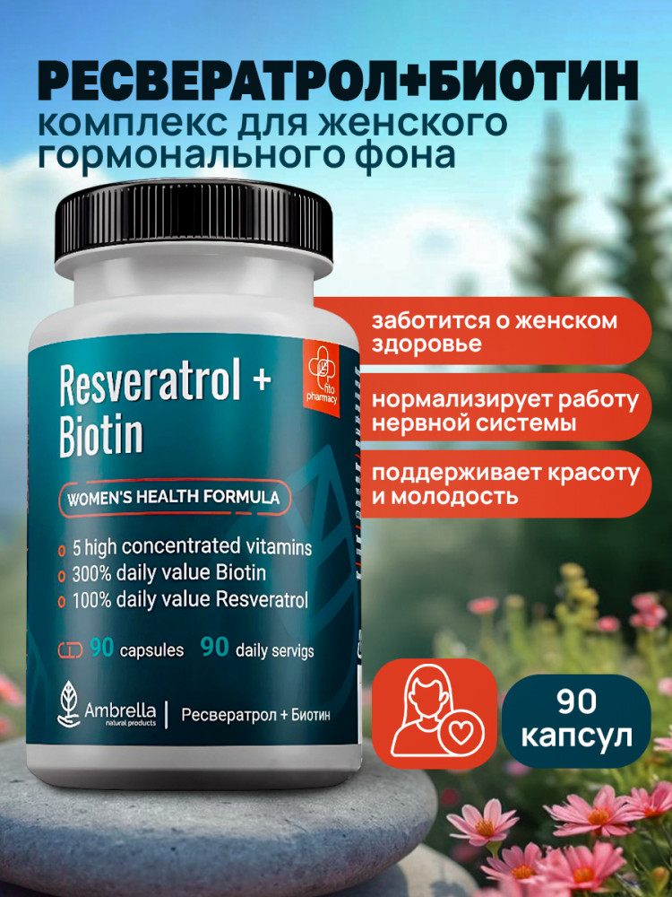 | Ambrella Комплекс для женского гормонального фона «Ресвератрол и Биотин»+56 (бонусов)
