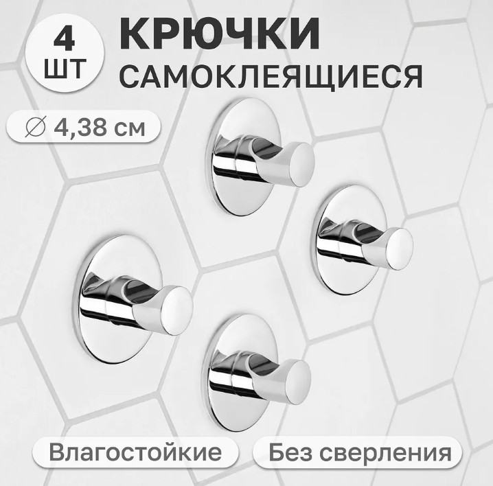 Набор из 4-х самоклеящихся крючков поможет в организации хранения на кухне, в коридоре, ванной и других комнатах дома. Имеют липкую основу и не требуют сверления стен или дверей. Можно использовать как дверной крючок, если дверца имеет ровную гладкую поверхность. Выполнены из металла. Металлические органайзеры на липучке подходят для помещений с повышенной влажностью. Универсальные самоклеящиеся крючки на кухне помогут организовать хранение кухонных принадлежностей. В ванной настенные держатели подойдут для полотенец и халатов. В прихожей можно использовать для верхней одежды или как ключницу. Подходят для брелоков ключей стандартного диаметра.