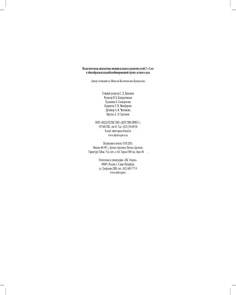 Педагогическая диагностика индивидуального развития детей 2-3 лет в общеобразовательной/комбинированной группе детского садаНаталья Валентиновна Верещагина +20