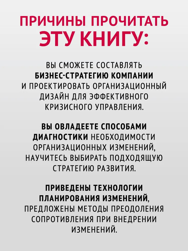 💳 Оплатить за товар можно при получении 🇰🇿 Есть бесплатная доставка по Казахстану от 1 дня 🎁 Копите бонусы с каждой покупки Серия: Учебник для вузов В учебнике представлены основные идеи, принципы и модели, лежащие в основе формирования организационного дизайна — оптимального для данной организации сочетания ее ключевых характеристик (структуры, систем коммуникации, властных отношений, координации выполнения работ, культуры, стратегии и др.), обеспечивающего достижение организационных целей в динамически меняющейся конкурентной среде. |