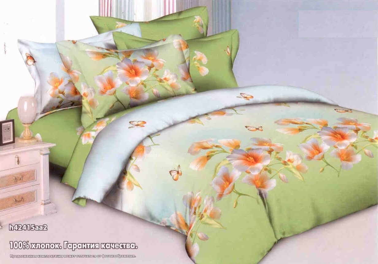 Комплект очень красивый! Цвет не такой как на картинке, более насыщенный салатовый! Оценка 4 потому, что на пододеяльнике есть не прокрашенный участок! (совсем небольшой) Так как ткань красят целым полотном, прилипли нитки, так и покрасили! Это хорошо, что комплект пестрый, не бросается в глаза! А если б однотонный, то очень видно было бы! В остальном мне нравится, соответствует заявленным характеристикам.
