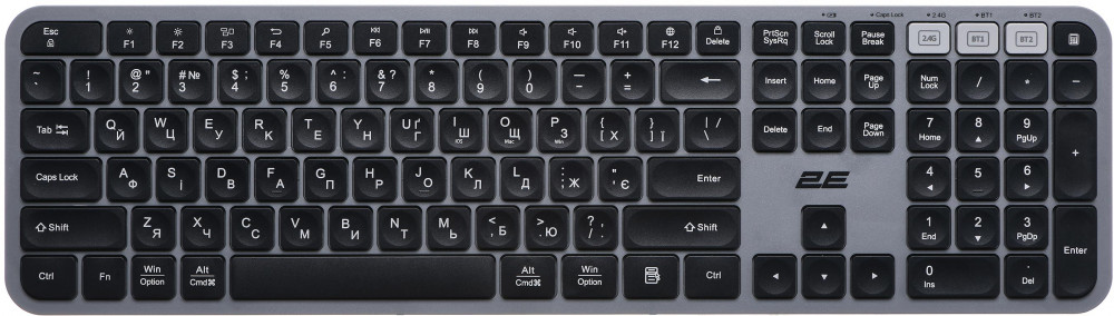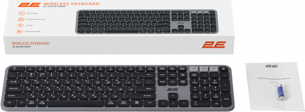 2Е Клавиатура KS240В данный момент этот товар отсутствует в продаже. Возможно, у нас найдется аналогичный или похожий товар здесь. Выполненная в минималистском стиле эргономичная полноразмерная беспроводная клавиатура 2E KS240 WL BT является настоящим произведением искусства создания современной компьютерной периферии. Трехзонная клавиатура имеет вогнутые клавиши, обеспечивающие удобство и комфорт при длительной печати. 110 клавиш, из которых 12 мультимедийных, отличаются низким ходом. Аксессуар изготовлен из легкого и в то же время устойчивого к повреждению ABS-пластика. |