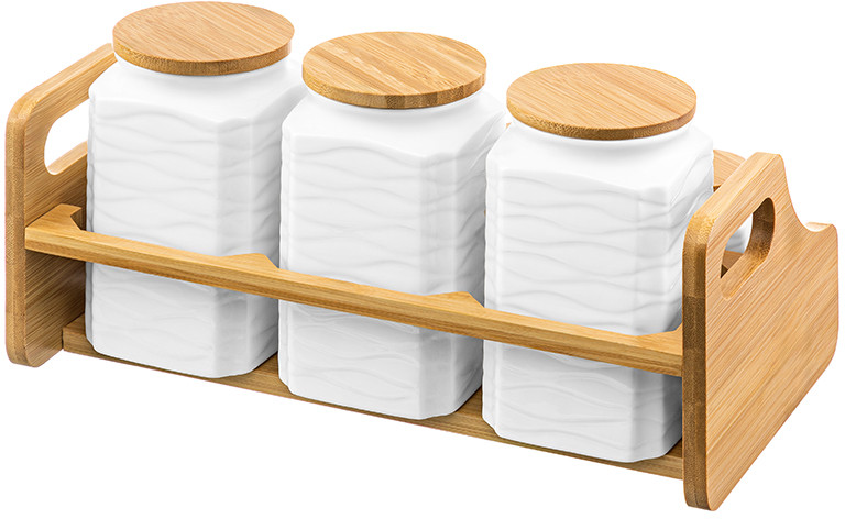 Не рекомендуется применять абразивные моющие средства. Фарфоровые изделия без бамбуковых деталей можно использовать в микроволновой печи и посудомоечной машине. Бамбуковые детали нельзя замачивать! Поставляется в стильной картонной упаковке. Комплект станет приятным подарком для любой хозяйки. Красивые банки для хранения станут украшением интерьера любой кухни и могут быть использованы для печенья, как сахарница или медовница. В коллекции Elan Gallery можно найти посуду и товары для дома на любой вкус!