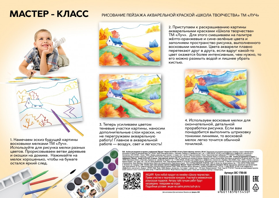 ЛУЧ Альбом для рисования «Машина»В данный момент этот товар отсутствует в продаже. Возможно, у нас найдется аналогичный или похожий товар здесь. Альбом для рисования «Машина» формата А4. Обложка на пружине из высококачественного целюлозного картона плотностью 190г/м3. Внутренний блок из офсетной бумаги плотностью 100 г/м3 из 24 листов с перфорацией. На оборотной стороне каждого альбома мастер-класс по рисованию. |