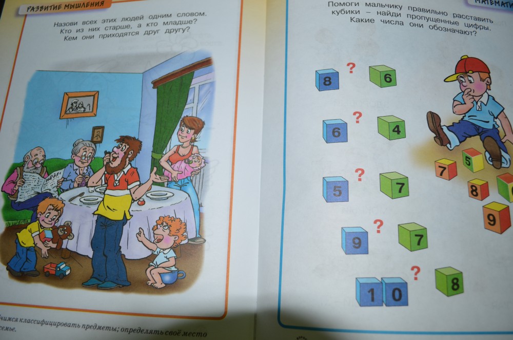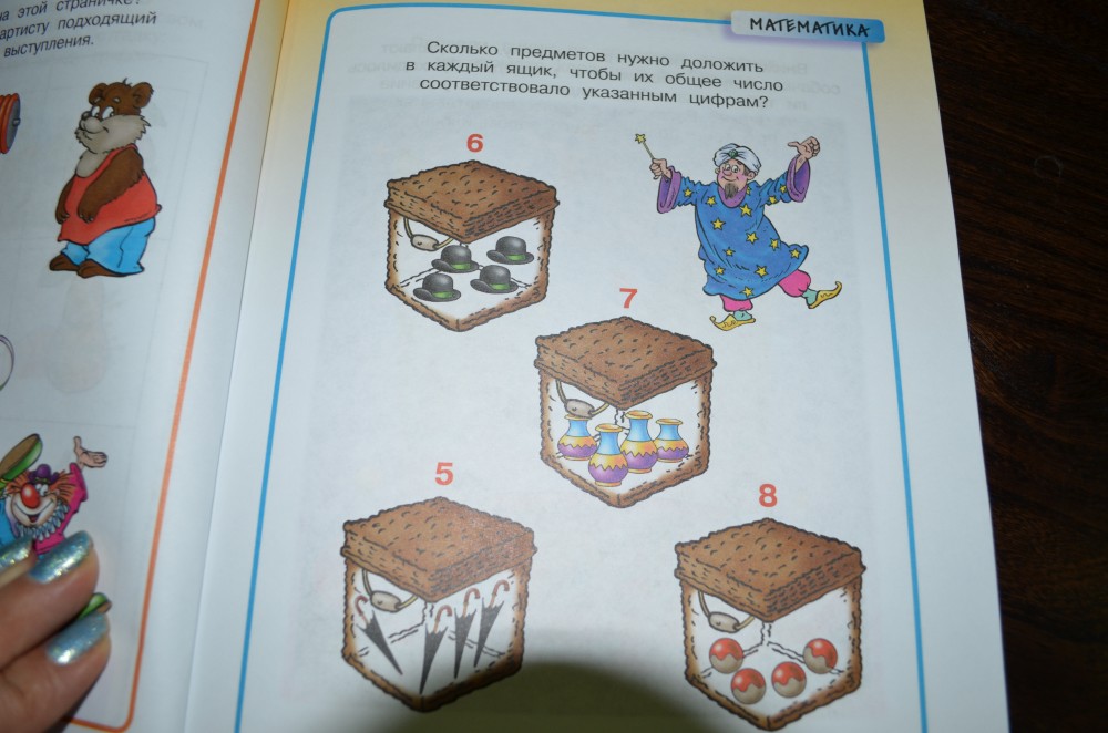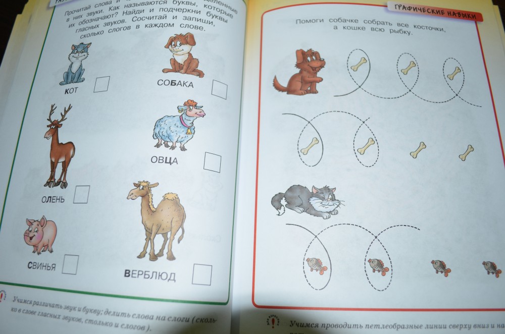 В книге очень много разнообразных заданий, вызывающих интерес у ребенка. Картинки яркие, понятные.