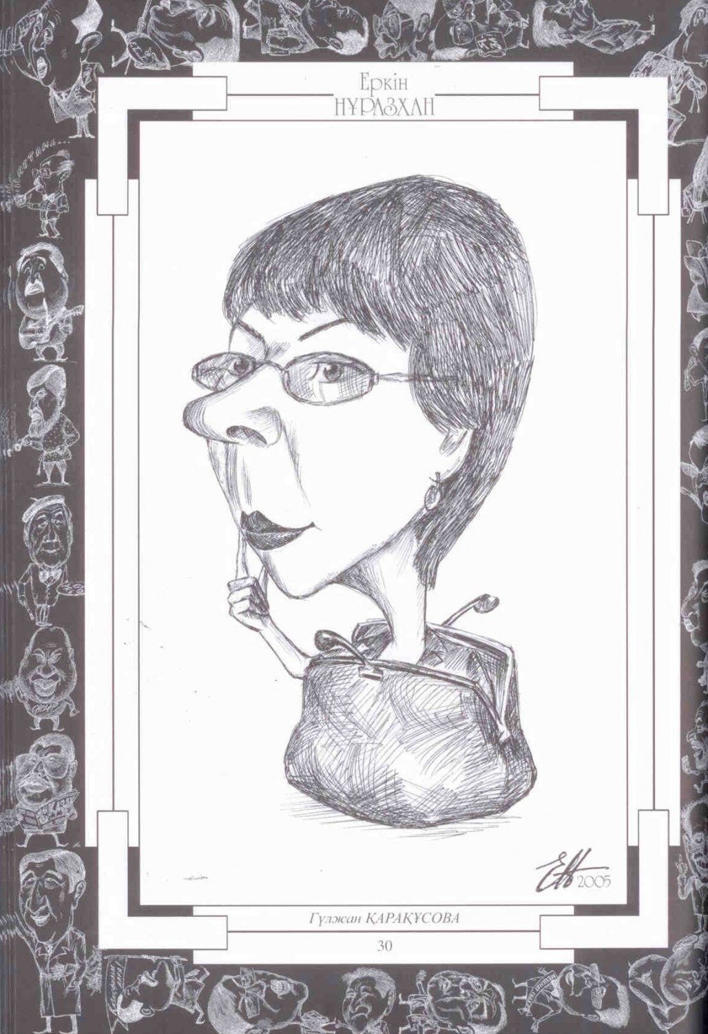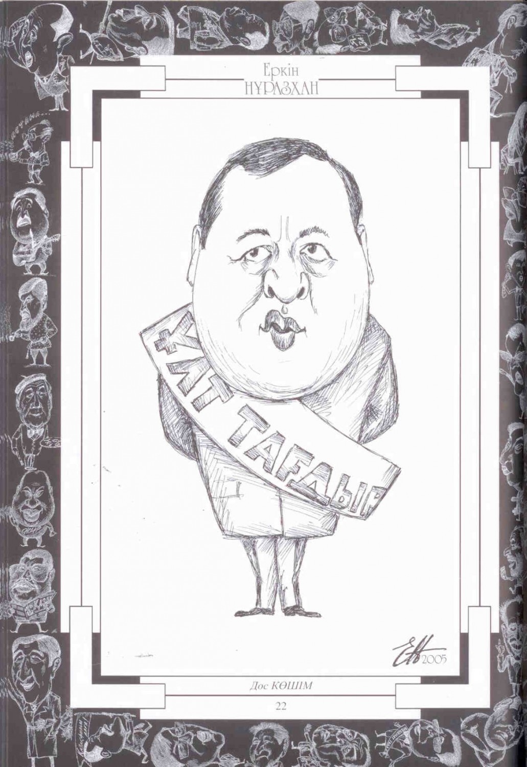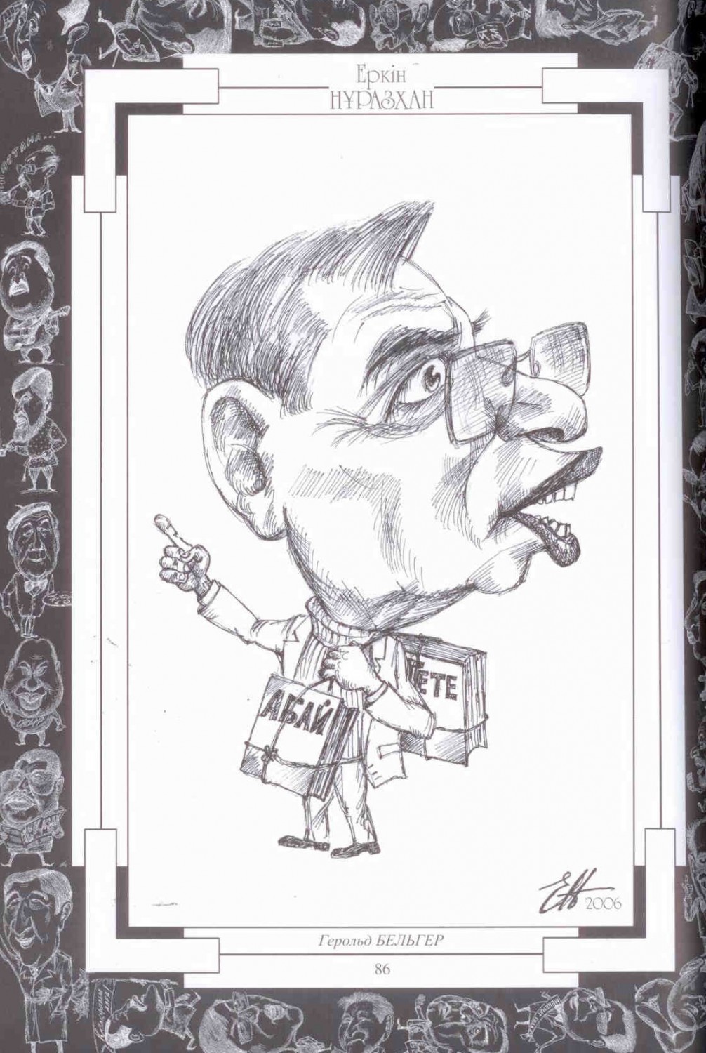 Бұл кітапқа елімізге белгілі карикатурашы, шарж суреттің майталманы Еркін Нұразханның 2005-2011 жылдар арасында жасалып, көпшілікке танымал болған туындылары кірді.