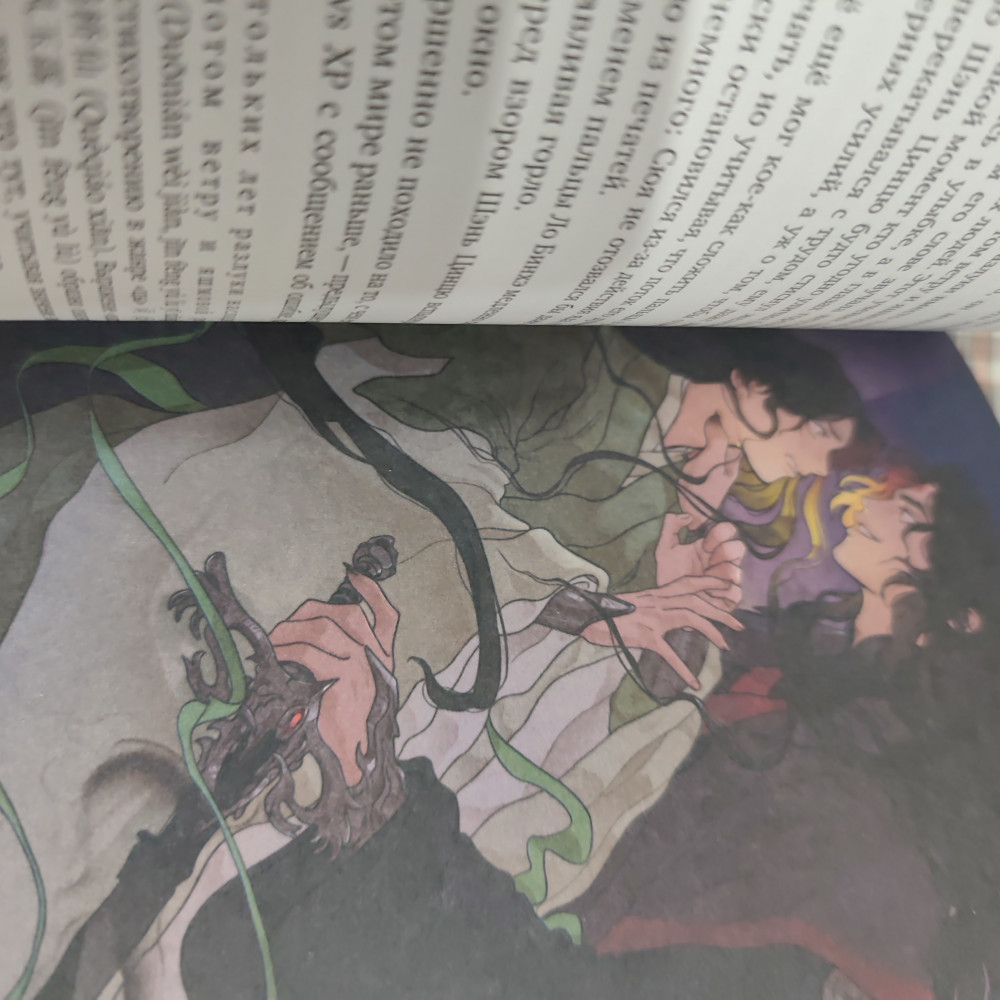 Очень красиво выглядит оформление. Первая книга была в зелёных тонах, эта в красных. Это два цвета главных героев. Очень красивая книга