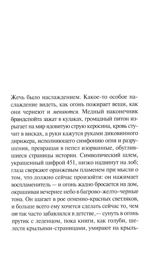 451° по ФаренгейтуВ данный момент этот товар отсутствует в продаже. Возможно, у нас найдется аналогичный или похожий товар здесь. Серия: Интеллектуальный бестселлер «451° по Фаренгейту» — роман, принесший писателю мировую известность. 451° по Фаренгейту — температура, при которой воспламеняется и горит бумага. Философская антиутопия Рэя Брэдбери рисует беспросветную картину развития постиндустриального общества; это мир будущего, в котором все письменные издания безжалостно уничтожаются специальным отрядом пожарных, а хранение книг преследуется по закону, интерактивное телевидение успешно служит всеобщему оболваниванию, карательная психиатрия решительно разбирается с редкими инакомыслящими, а на охоту за неисправимыми диссидентами выходит электрический пес… |