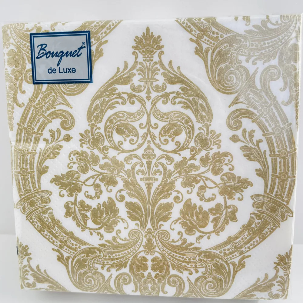 Art Bouquet Салфетки бумажные «Золото на белом»В данный момент этот товар отсутствует в продаже. Возможно, у нас найдется аналогичный или похожий товар здесь. Серия: Bouquet de luxe «Салфетки Art Bouquet» — это яркие трехслойные бумажные салфетки круглой формы. Такие салфетки не только сослужат хорошую службу за трапезой, но и дополнят общую атмосферу праздника. Качественные трехслойные бумажные салфетки изготовлены из качественной целлюлозы. На салфетках нанесен яркий рисунок. Салфетки с рисунком станут отличным дополнением вашего праздничного стола. |