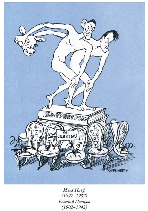 Илья Ильф (Иехиел-Лейб Файнзильберг) и Евгений Петров (Евгений Петрович Катаев) начали работать вдвоем в 1927 году. Познакомились они случайно, в Москве. «До этого каждый из нас писал самостоятельно. Это были маленькие рассказы, фельетоны... Когда мы стали писать вдвоем, выяснилось, что мы друг к другу подходим, как говорится, дополняем один другого, — вспоминали позже литераторы. — Очень трудно писать вдвоем. Надо думать, Гонкурам было легче. Все-таки они были братья. А мы даже не родственники. И даже не однолетки. И даже различных национальностей: в то время как один русский (загадочная славянская душа), другой — еврей (загадочная еврейская душа)... Мы беспрерывно подвергали друг друга жесточайшей критике, тем более обидной, что преподносилась она в юмористической форме. За письменным столом мы забывали о жалости». В творчестве почти всегда скрыта загадка, а уж в совместном — тем более. Одно можно сказать наверняка — в результате этого творческого союза на свет родилось два бессмертных романа, которые не нужно специально представлять публике. В их удивительно смешной форме отразилась жизнь страны в переломное время, когда старая жизнь с ее мещанским бытом и меркантильными интересами уходила в прошлое и зарождалась жизнь новая, которая очень часто строилась на чистом энтузиазме. Веселыми озорными энтузиастами и были Ильф с Петровым. Такими они и вошли в историю отечественной литературы ХХ века.
