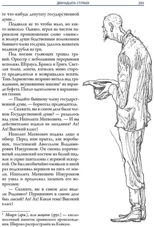 Книгу украшают иллюстрации, выполненные Кукрыниксами. Под этим странным псевдонимом творили три художника — Михаил Васильевич Куприянов, Порфирий Никитич Крылов и Николай Александрович Соколов. Вряд ли в Советском Союзе нашелся 6ы человек, который не видел их рисунков, шаржей или карикатур. По выразительным плакатам Кукрыниксов можно проследить все ключевые события войны СССР с фашистской Германией, а также главные моменты послевоенного времени, происходившие на мировой политической арене. Знакомство трех художников состоялось, когда они еще были студентами московского ВХУТЕМАСа — Высших художественно-технических мастерских. Начинали Кукрыниксы свой творческий путь с иллюстраций к рассказам и сатирических рисунков, которые едко высмеивали окружающую действительность. Умение подмечать смешное и мгновенно отражать его в своем творчестве прекрасно проявилось в иллюстрациях Кукрыниксов, которые они выполнили для романов Ильфа и Петрова. Их рисунки созвучны стилю «Двенадцати стульев» и «Золотого теленка» — они легки, ироничны и полны задорного юмора. |
