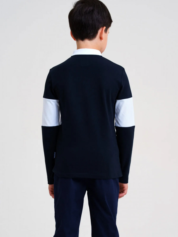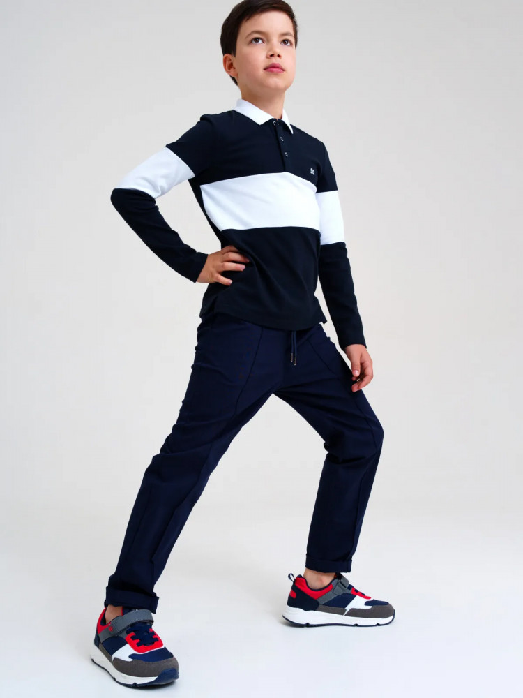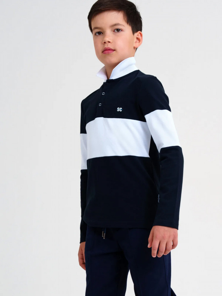 Школьное поло из ткани классического плетения пике, актуально в школу, как рубашка. Поло прямого силуэта с длинным рукавом и контрастным воротником всегда выглядит элегантно и по-взрослому. Минималистичный дизайн модели делает поло базовым элементом для комфортного повседневного гардероба мальчика-подростка. Высокое содержание хлопка 95%. Благодаря наличию эластана в составе ткани, футболка для школы проще в уходе и отлично держит форму.