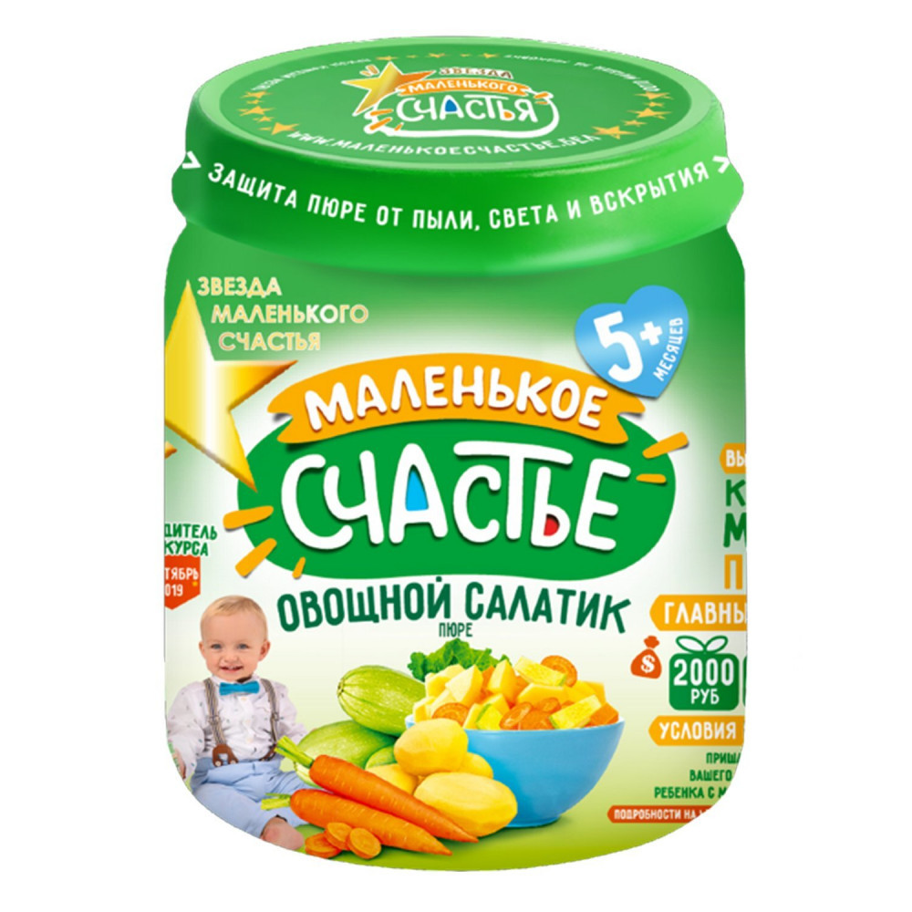Маленькое счастье Пюре детское с 5 месяцев «Овощной салатик пюре»В данный момент этот товар отсутствует в продаже. Возможно, у нас найдется аналогичный или похожий товар здесь. Пюре «Маленькое счастье» гомогенизированное и стерилизованное детское питание, богато витаминами и минералами, легко усваивается. Все ингредиенты этого аппетитного лакомства отличаются низкой аллергенностью, поэтому он отлично подходит для продолжения прикорма и знакомства малыша с новыми вкусами. |