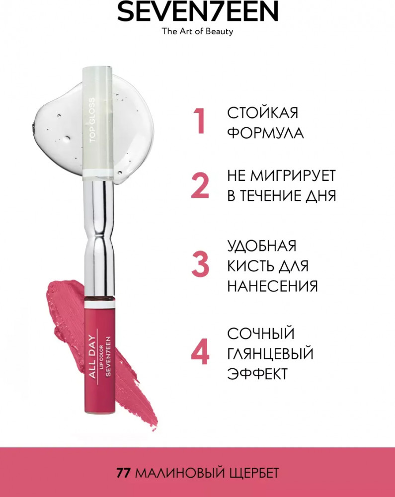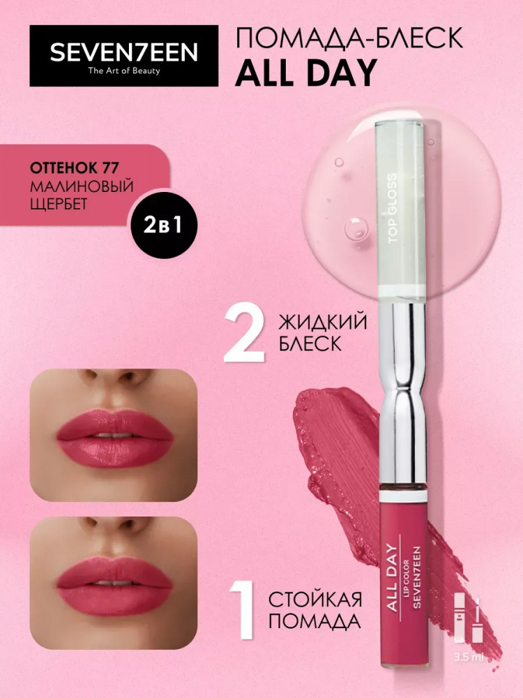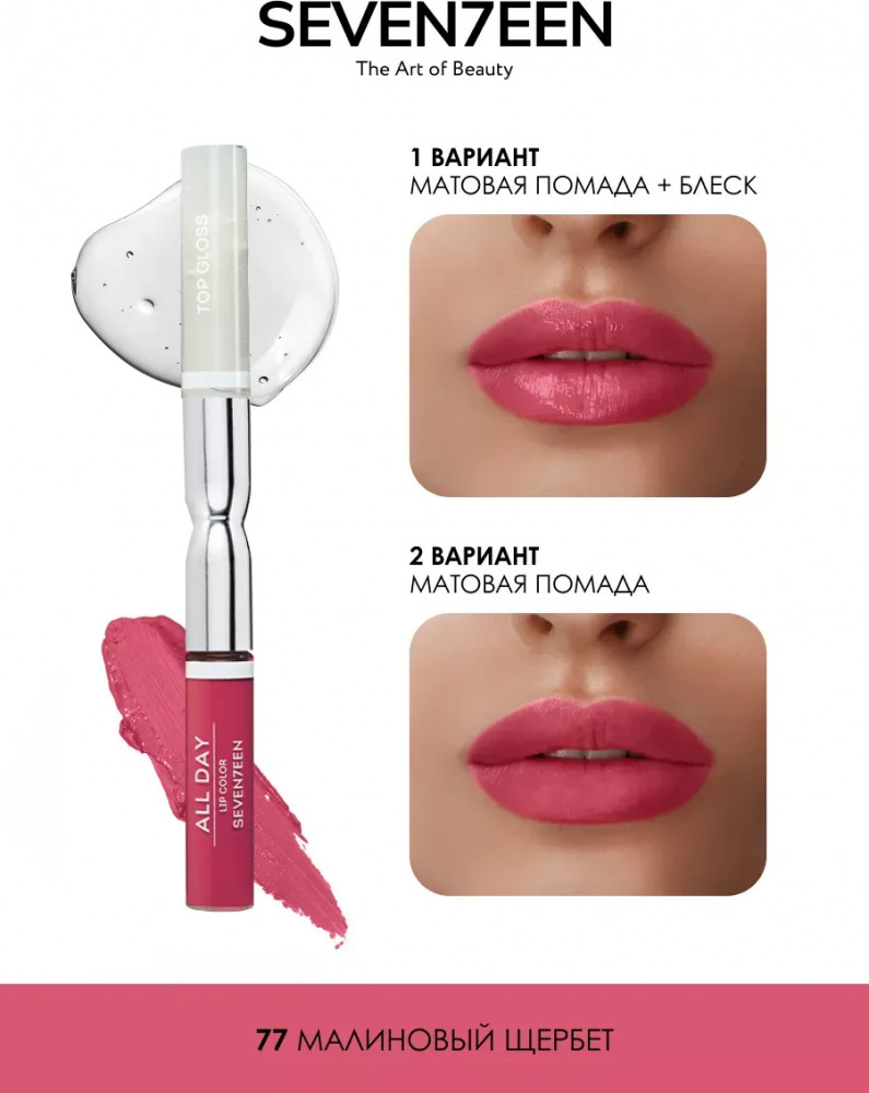 Отзывы «Помада для губ жидкая «All Day Lip Color&Top Gloss», 77»