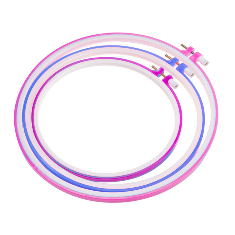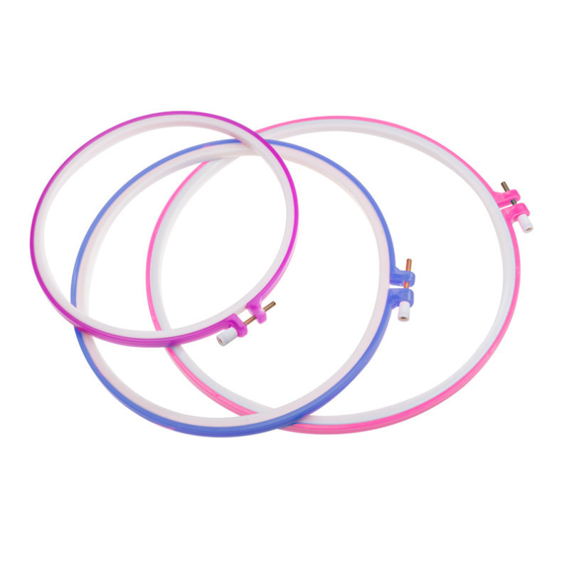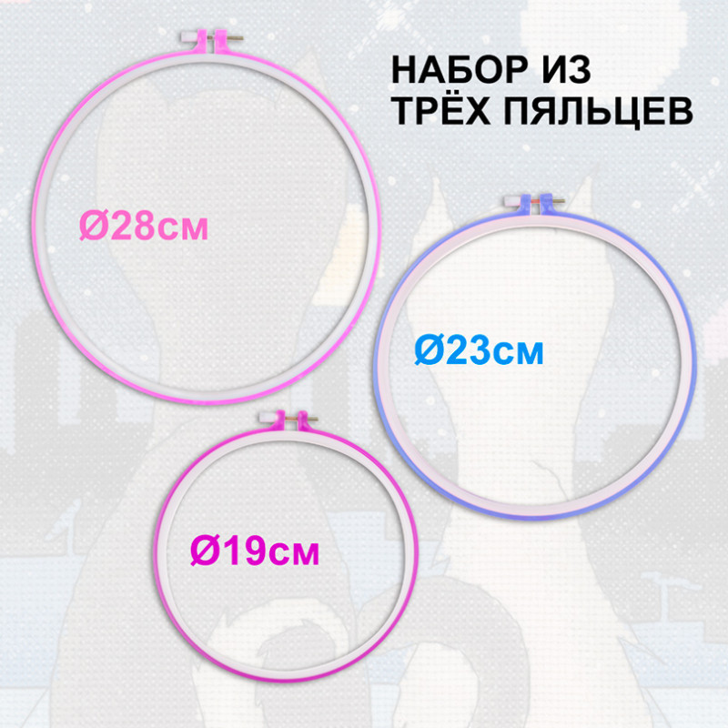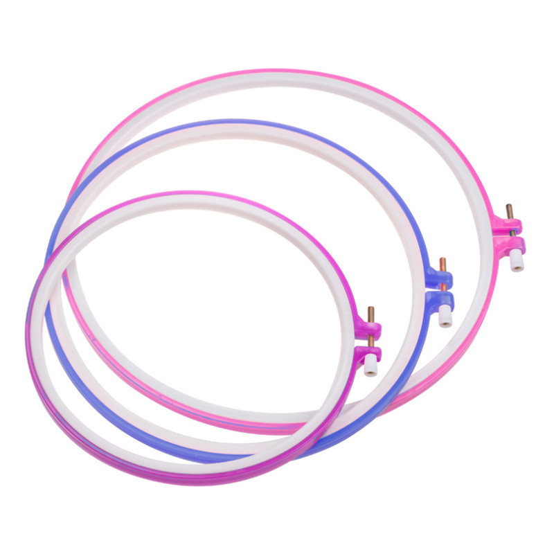 В состав набора пяльцев для вышивания входят пяльцы разных диаметров: