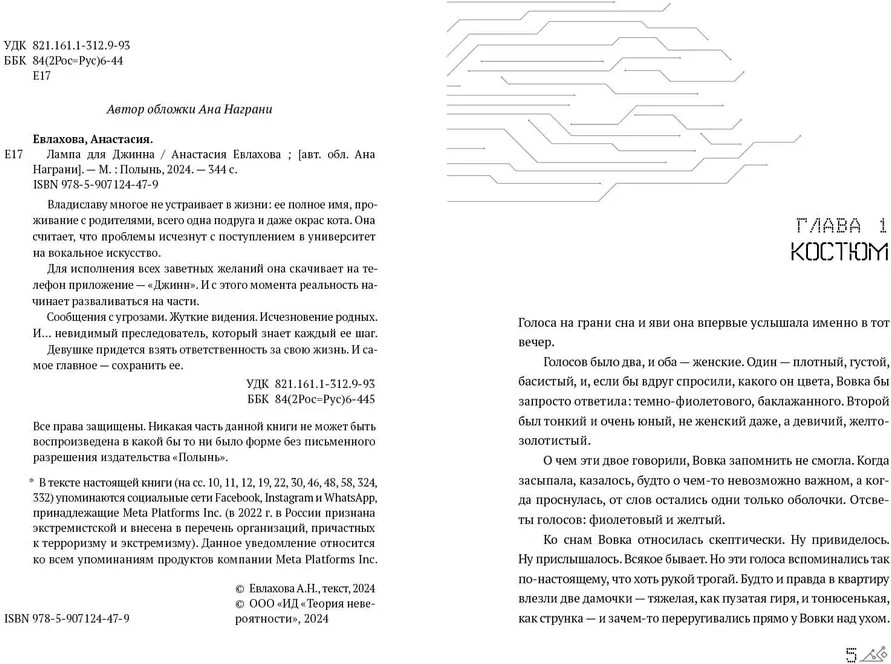 💳 Оплатить за товар можно при получении 🇰🇿 Есть бесплатная доставка по Казахстану от 1 дня 🎁 Копите бонусы с каждой покупки Владиславу многое не устраивает в жизни: ее полное имя, проживание с родителями, всего одна подруга и даже окрас кота. Она считает, что проблемы исчезнут с поступлением в университет на вокальное искусство. Для исполнения всех заветных желаний она скачивает на телефон приложение — «Джинн». И с того момента реальность начинает разваливаться на части. Сообщения с угрозами. Жуткие видения. Исчезновение родных. И... невидимый преследователь, который знает каждый ее шаг. Девушке придется взять ответственность за свою жизнь. И самое главное — сохранить ее. |