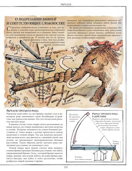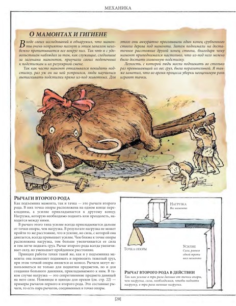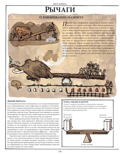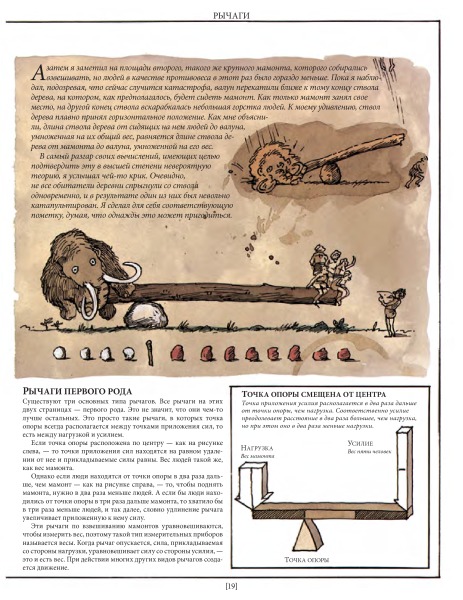 Это лишь малая часть удивительных взаимосвязей между разными на первый взгляд вещами. Задействовав свою фантазию и талант художника на полную катушку, Дэвид Маколи создал потрясающую книгу для всех, кому интересно узнать, как работают разные устройства. Истории, в которые попадает главный герой, мохнатый мамонт, помогают понять сложные технологии даже технически не подкованному читателю.