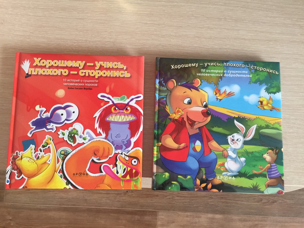 Купила сыну сразу две книги из этой серии. Пришли запечатанные в полиэтилен. Книги довольно тяжёлые, немаленькие. Страницы глянцевые, картинки яркие. Сын очень доволен. На прочтение каждой книги ушло по дню. С радостью обнаруживал у себя добродетели, с небольшой печалькой пороки. Очень полезная покупка для нас.