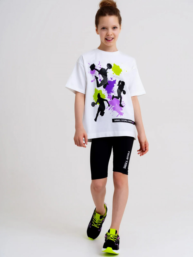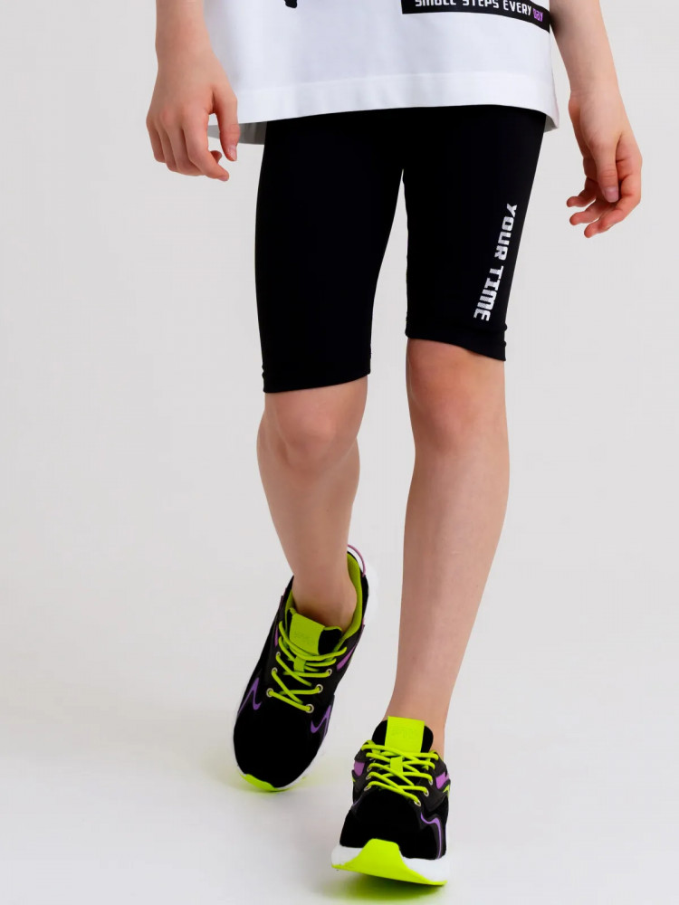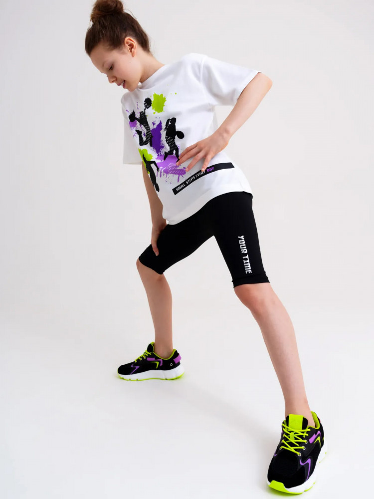Спортивные черные легинсы (велосипедки) — необходимый атрибут девочки подростка для занятий физкультуры и спорта, как на улице, так и в зале. С футболкой или толстовкой, легинсы составят стильный красивый комплект в школу. Мягкое трикотажное полотно создаст комфорт для школьницы.