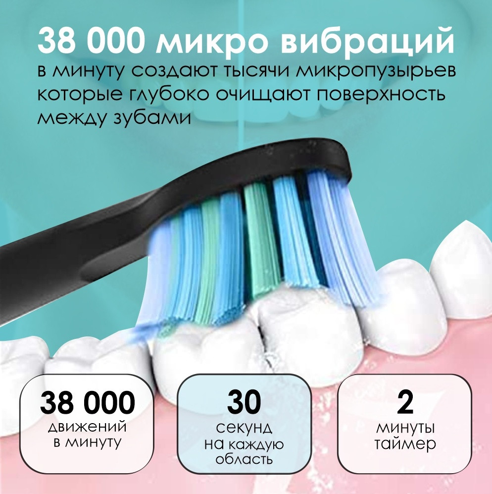 Преимущество электрической зубной щетки AM1: зубная эмаль абсолютно не повреждается, технология возвратно-вращательного механизма чистки позволяет очищать межзубное пространство с одновременным естественным отбеливанием зубной поверхности. Щётка изготовлена из пищевой полипропилена, не токсична, без запаха и абсолютно безопасна.