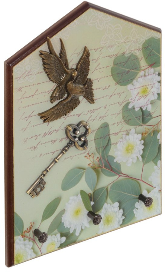 Remeco club КлючницаВ данный момент этот товар отсутствует в продаже. Возможно, у нас найдется аналогичный или похожий товар здесь. Серия: Тиффани Ключница в форме домика открытого типа с тремя крючками. Украшена изображением цветов и металлическим декором в виде ключа и птицы . Ключница — предмет не только красивый, но и функциональный, поэтому ей найдется место и в квартире, и в загородном доме. |
