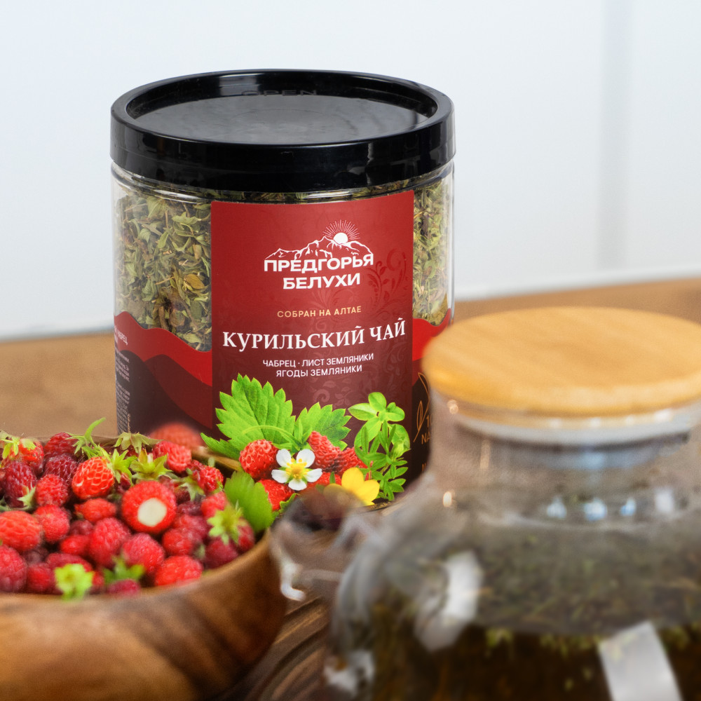 Предгорья Белухи Чай курильский с чабрецом, листом земляники, ягодами земляники